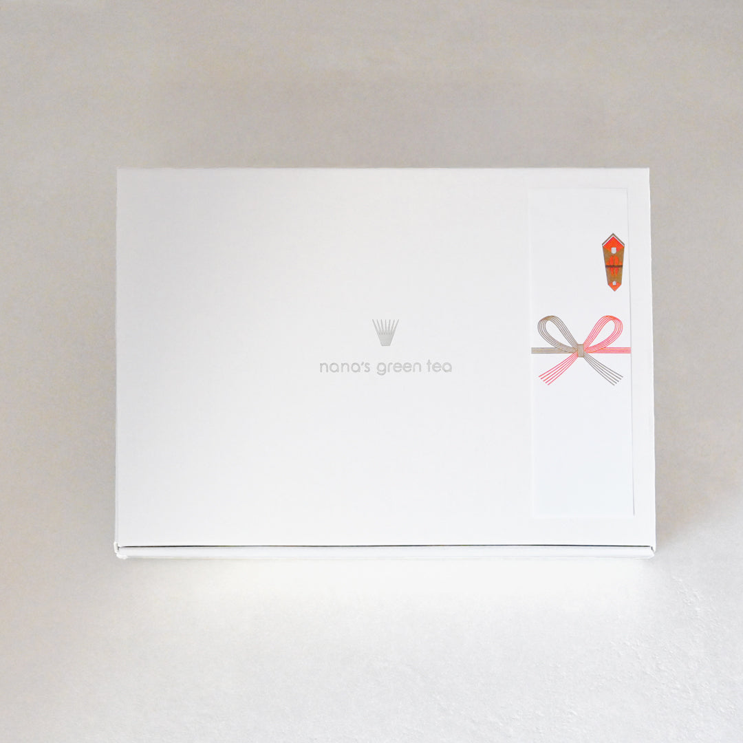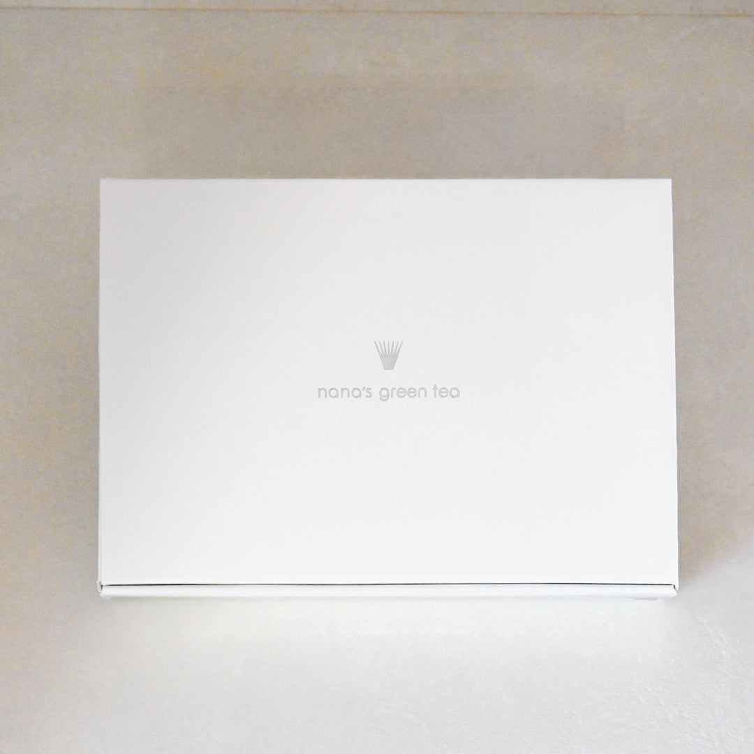 白い箱にnana’s green teaのロゴが入っているシンプルな仕様なので、いろいろなシチュエーションにてお使いいただけます。